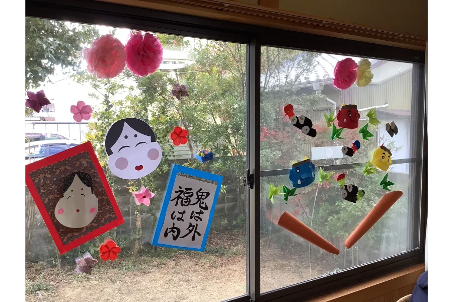 👹 利用者さまと一緒に作った「節分」の壁面飾り