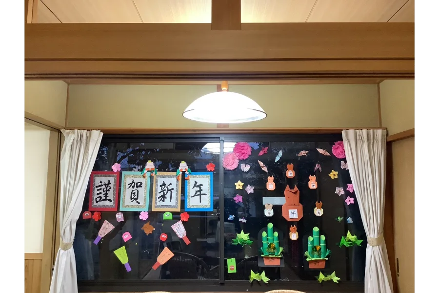 玄関の門松や室内の飾り付けも整い、施設全体が新年らしい華やかさにご利用者様からも「来るのが楽しみになるね」と嬉しいお声をいただきました。