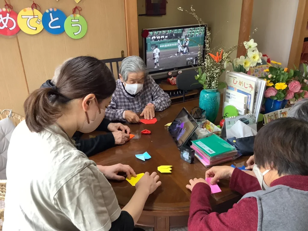 折り紙を楽しんだり、お話に花を咲かせたりと、笑顔あふれるひととき。